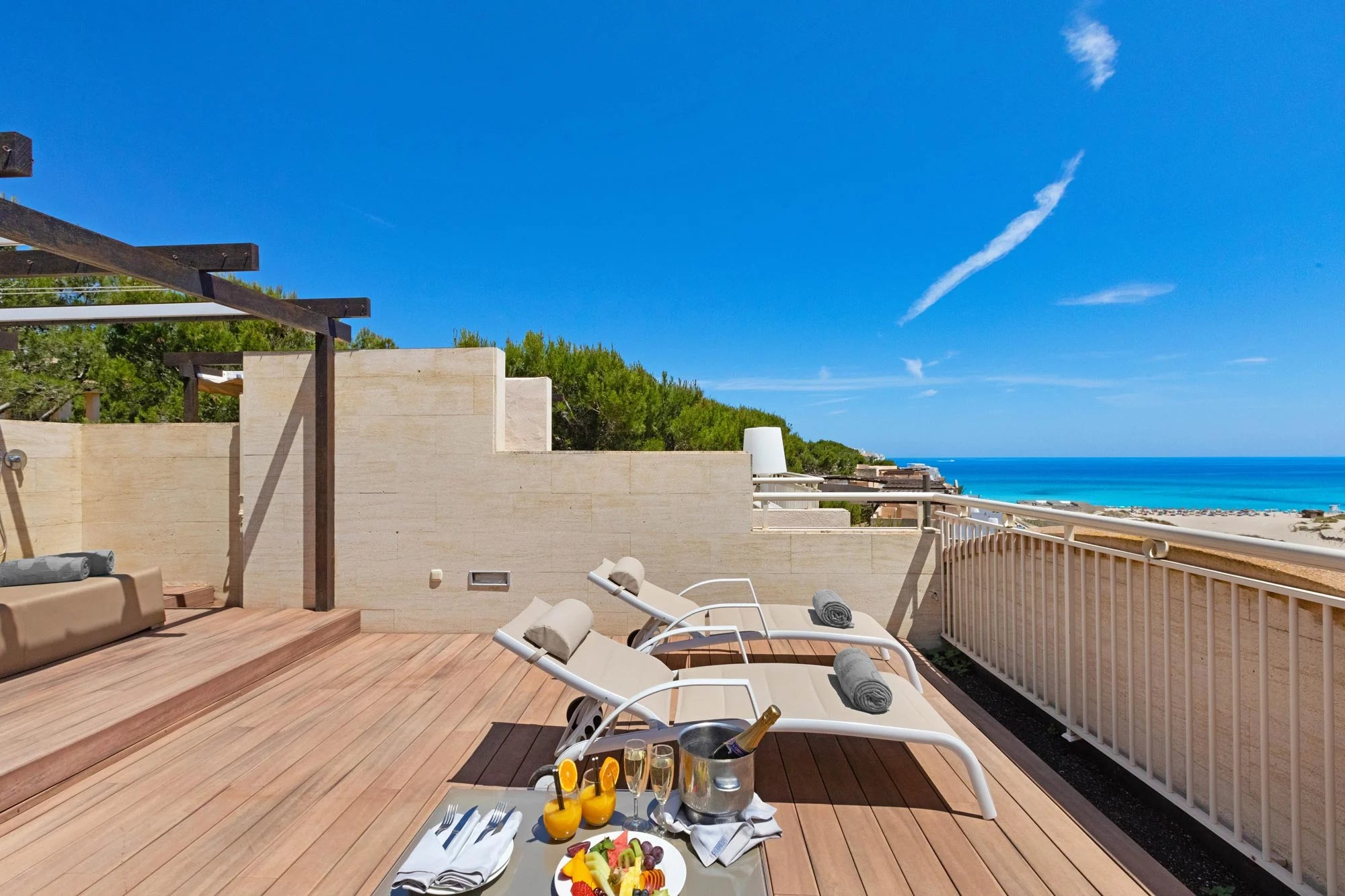 Our Royal Terrace is the crown jewel; a space designed to offer you maximum comfort and luxury. Enjoy an exclusive terrace equipped with a mini swimming pool with hydromassage features for two people, a Balinese bed, sun loungers and a charming seating area.