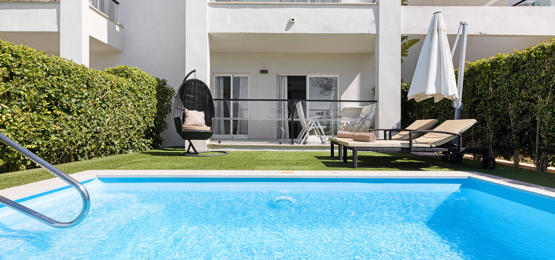 En nuestros Apartamentos Garden, cada rincón está diseñado para que la comodidad sea protagonista en tus vacaciones, pero con un toque de lujo. Relájate en tu jardín privado con balinesa y deja que el tiempo se detenga. Estamos seguros que no querrás irte de tu pequeño paraíso.