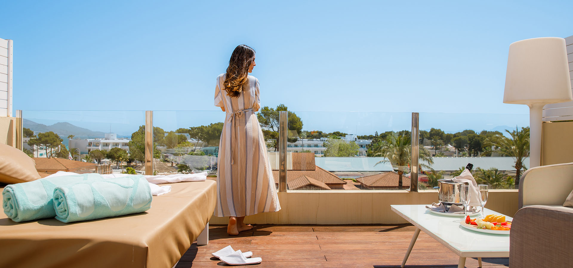 ¡La terraza de tus sueños te espera! Imagina que tienes tu propio solárium privado con una exclusiva mini piscina con hidromasaje con cómodas balinesas. En nuestro apartamento Selection Club Royal Terrace, el confort te espera tanto dentro como fuera. ¡Tu estancia será tan real como su nombre lo indica!