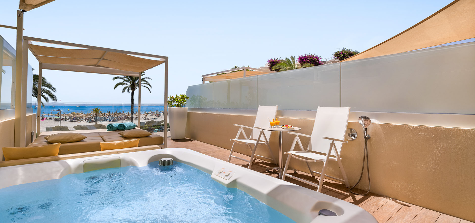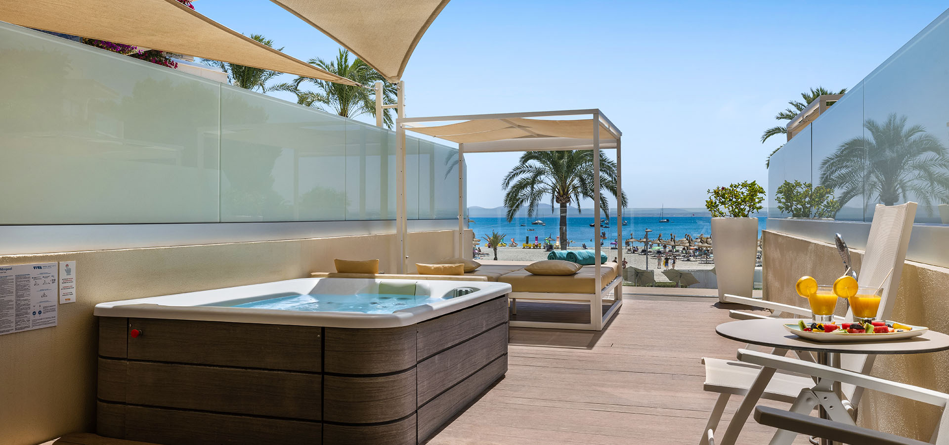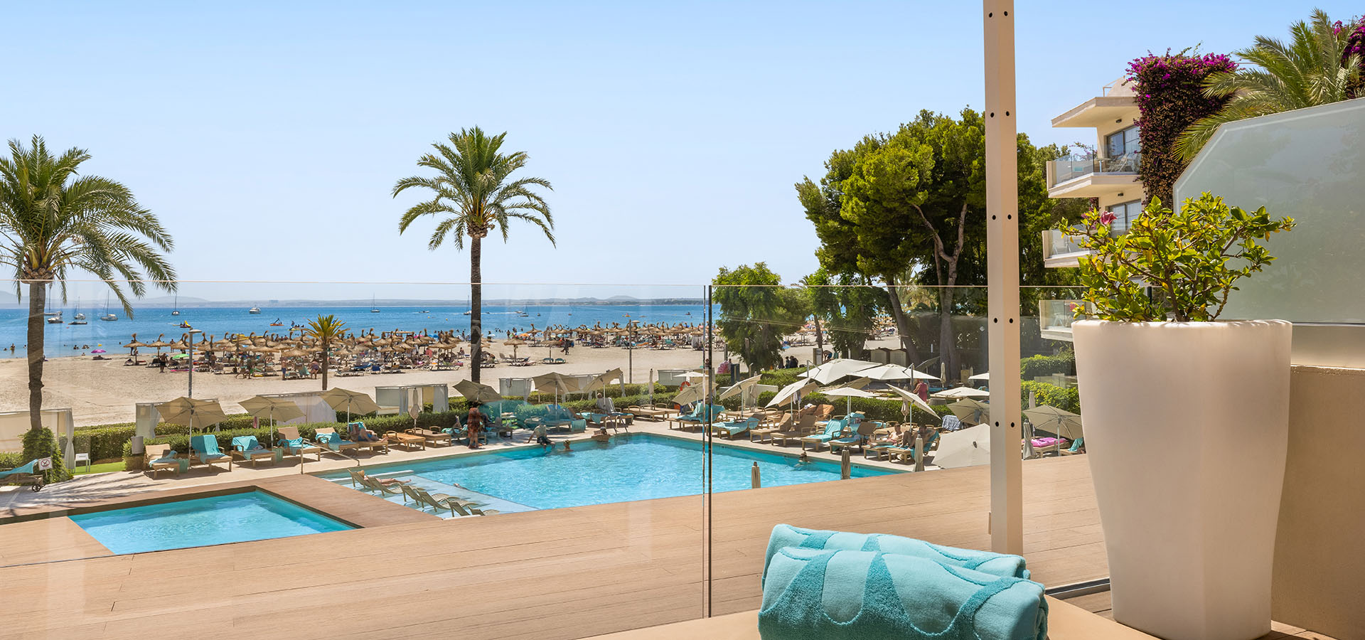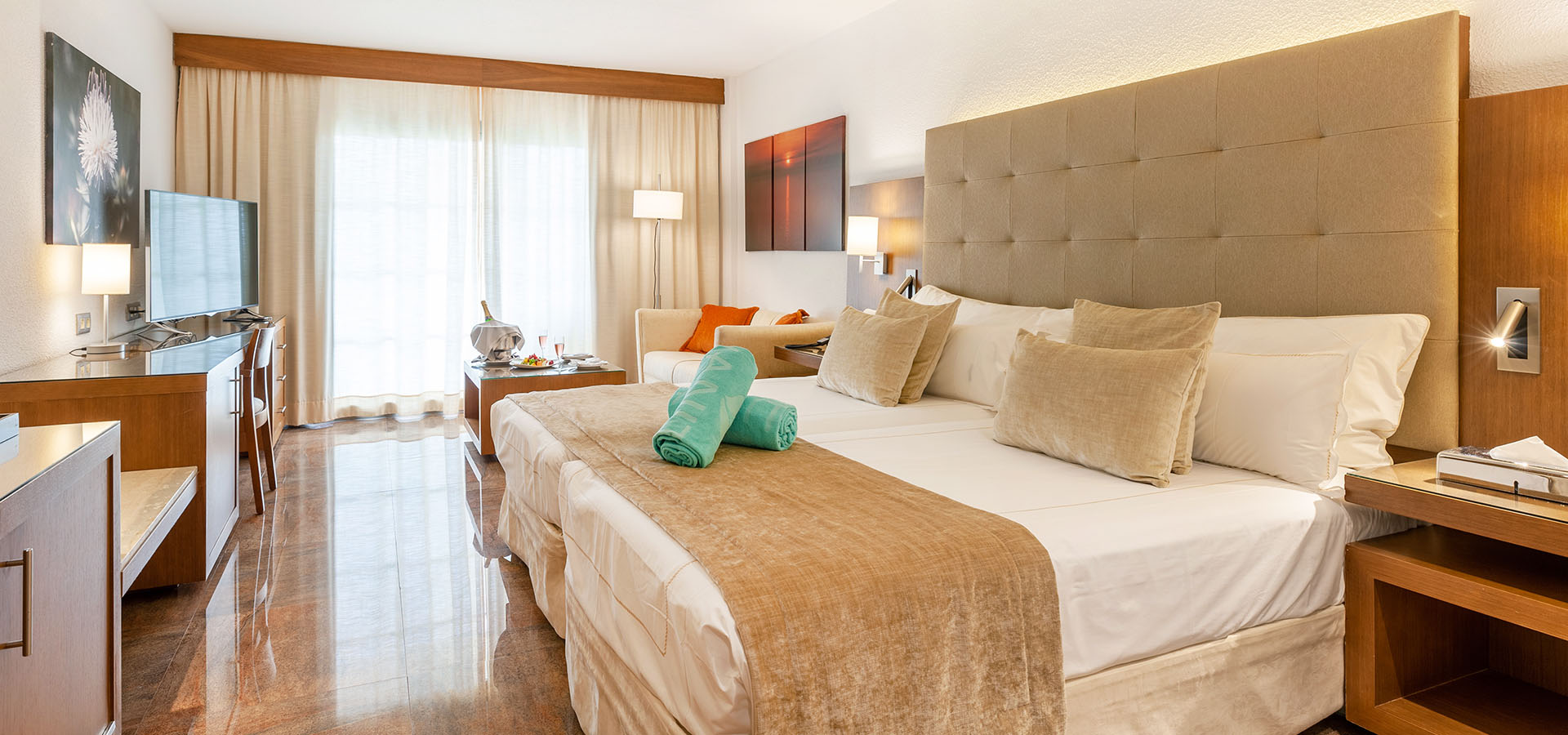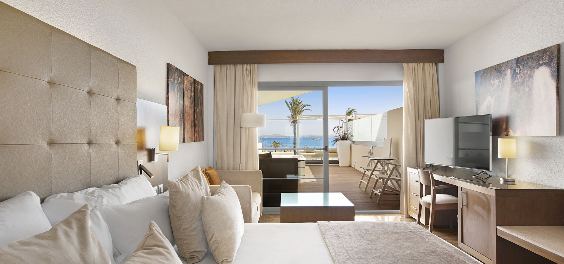 Harmony. That's what you'll feel in this room. And a great deal of peace. The colour palette that dominates its design and views of one of Majorca's most stunning beaches will make you feel heavenly. Enjoy all the benefits of our Selection Club in a really superior room.
