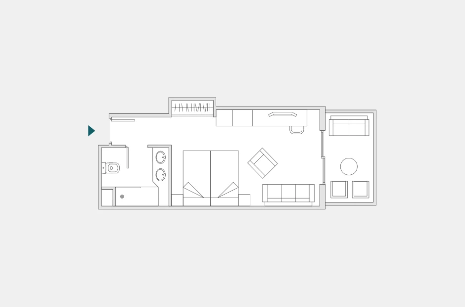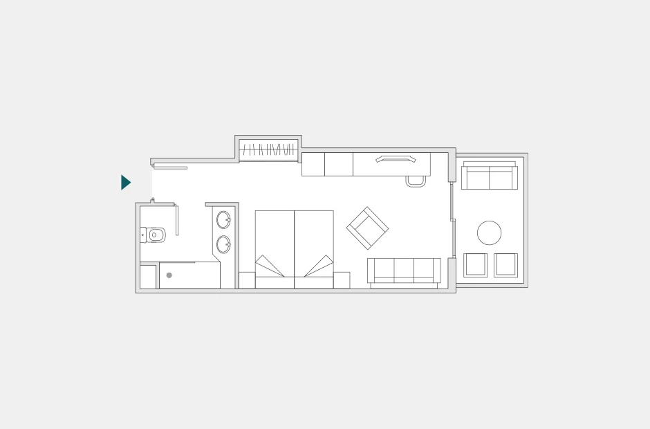 With so many incentives outside, you'll be itching to open your cases and head out to enjoy the area, but when you enter this room, the hurry will vanish. You'll be completely at ease here. 24 m2 of pure comfort, peace and style.