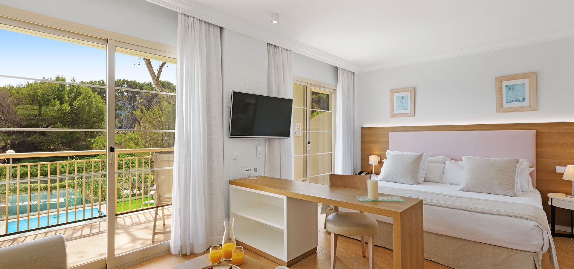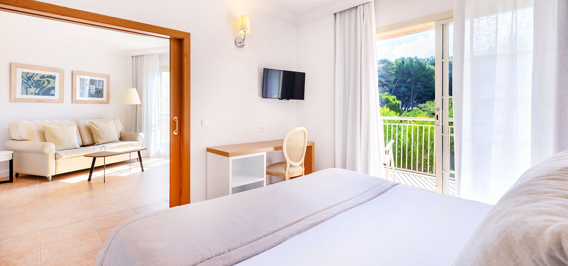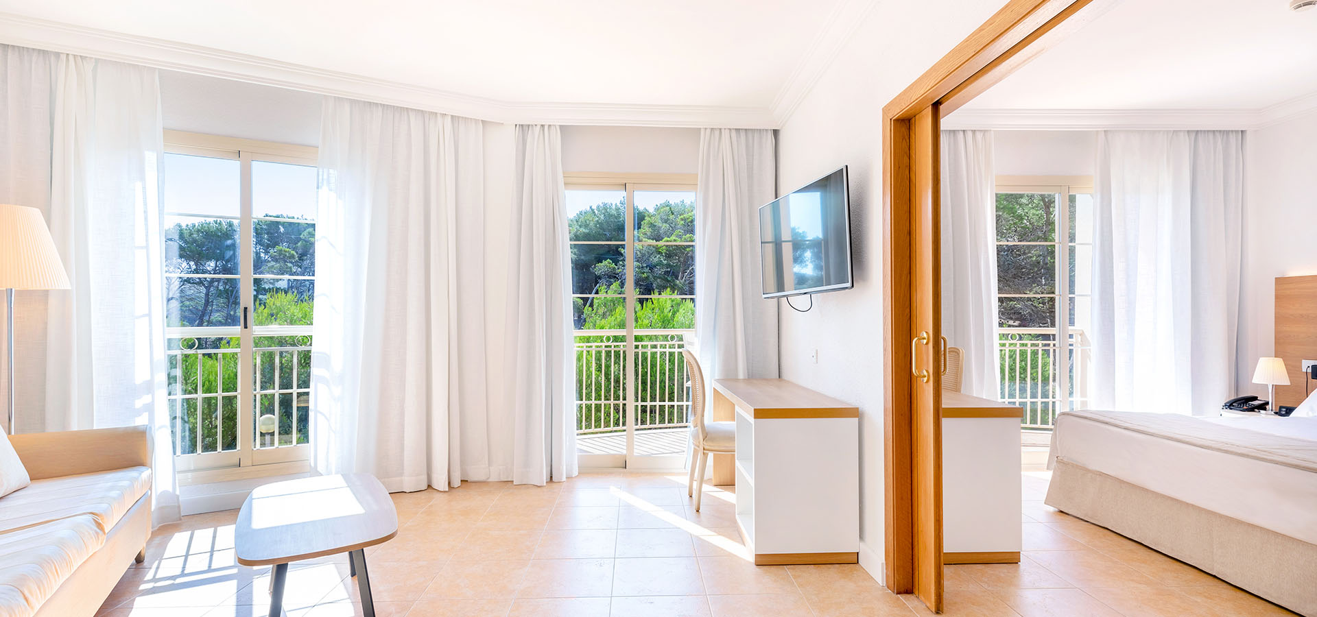 Confort y elegancia. Así son nuestras Junior Suites, diseñadas para brindarte unas vacaciones perfectas. ¡Vive la máxima relajación y la tranquilidad que te mereces! Reserva ahora y disfruta de una experiencia definitiva.